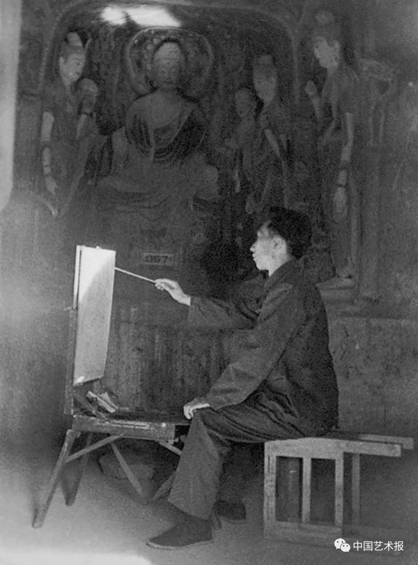 1978年,靳尚谊在敦煌洞窟中临摹壁画