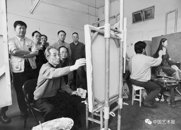 1999年,靳尚谊在广州美院给研究生示范