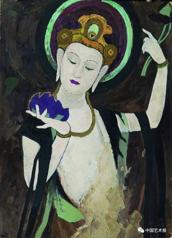 临敦煌唐壁画之二 纸板油画 1978 靳尚谊