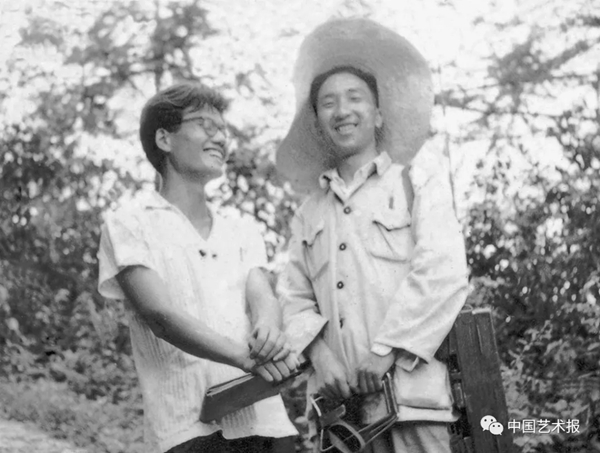 1972年,靳尚谊和侯一民及北京军区美术工作者合影