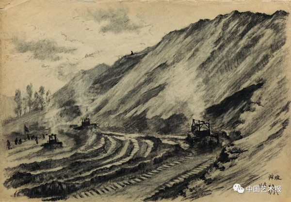 降坡 纸本炭笔 27cm×39cm 1954