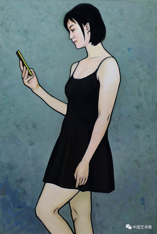 看手机的女孩 布面油画 90cm×60cm 2017