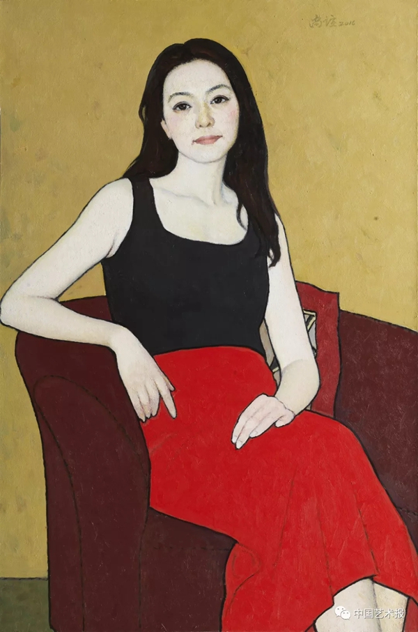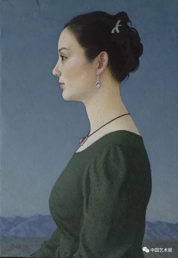 “过去,我对这个社会是熟悉的,技术问题解决之后,创作就应运而生。现在我不了解这个社会了,因为中国发展得太快。虽然如此,我仍然在努力追求,作为画家我能够不断地探索,不服老地继续画,因为我感受到研究的乐趣。”靳尚谊从未停下自己的脚步。在绘画语言风格上,他不再像过去那样强调对人物形象体积结构的塑造,而更注重对人物轮廓线的刻画,形成既平面又具有强烈色彩的画面。它变得更单纯,仿佛回到了欧洲文艺复兴早期的风格。