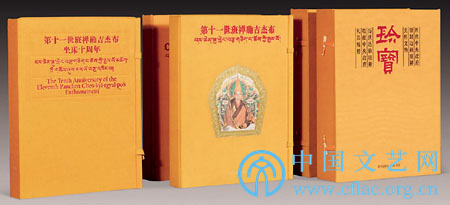 上图:《珍宝》(汉、英两种文版),朝华出版社出版;《第十一世班禅确吉杰布》(汉、英两种文版),朝华出版社出版;《第十一世班禅确吉杰布坐床十周年》(汉、藏、英三种文版),中国藏学出版社出版。下图:《华夏之路》(一—四册)(中、英、法、德、日五种文版共计二十册),朝华出版社出版。
