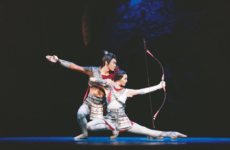 从序幕独舞到全剧,长弓不是普通的道具,而是非常重要的象征,代表那个时代的风尚。从曹植《白马篇》的“宿昔秉良弓,楛矢何参差。控弦破左的,右发摧月支”到北朝民歌《李波小妹歌》中的“褰裙逐马如卷蓬,左射右射必叠双”,无不洋溢着尚武之风,显示着蓬勃的生命力度。也正因为是这样的锐不可当的前行开拓,才会对人生,对命运,对人的价值产生思辨与觉醒。这正是芭蕾舞剧《花木兰》在同类题材中,挖掘、提炼并营造出思想内蕴的新境界。
