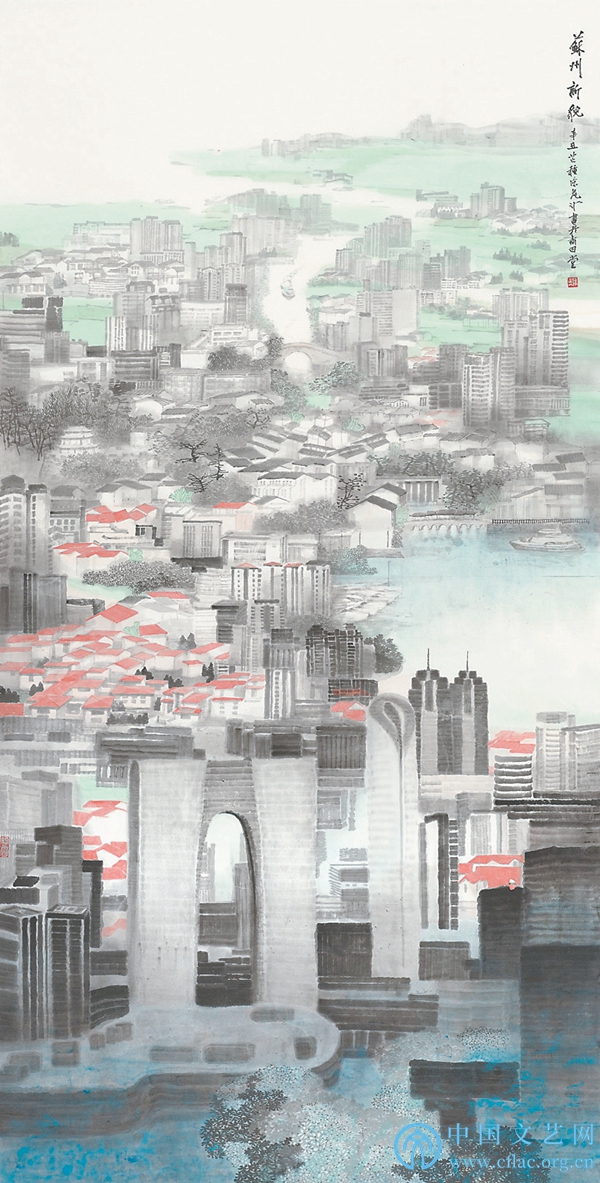 这些新创作,让我想起新金陵画派代表画家钱松嵒先生在上世纪50年代末60年代初采风时所画的那些画,以新视角、新笔墨,豪情满怀地讴歌祖国的河山新貌和人民的创造激情,对传统的山水画进行大胆改革和创新,从内容到形式所完成的探索与蜕变。虽然,陈危冰这些新画风和新探索还远未定型,还有待自我的完善、提升和时间的积淀、确认,但这种自我突破的勇气与精神,值得肯定。同时,他用绘画形式传播江南文化,讲好苏州故事的努力,更值得倡导。