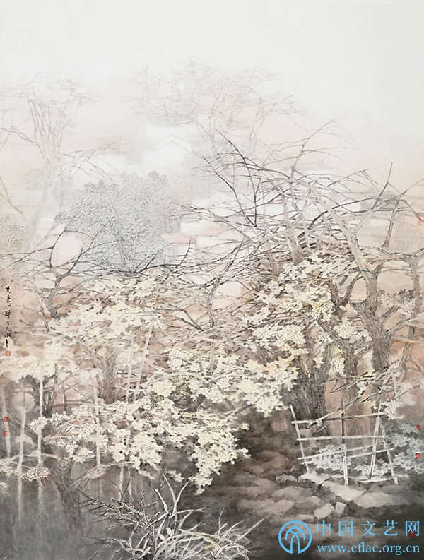 我在这里不厌其烦地列举这几位田园诗大家的作品,就是因为在苏州当代画家中,有一位专攻田园山水画的名家陈危冰。他的田园山水画,精确地传达出以上诗人田园山水诗歌中的意境,或者说是对中国古典田园诗精神的一种奇妙的嫁接与转译。