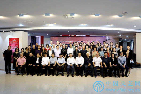 9月23日,“党的光辉照我心——庆祝中国共产党成立100周年百名新文艺群体书画家汇报展暨第三届新文艺群体书画家优秀作品展”在中国文艺家之家展览馆开幕。图为参加开幕式相关人员合影。中国文艺网 高森 摄