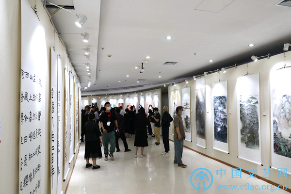 9月23日,“党的光辉照我心——庆祝中国共产党成立100周年百名新文艺群体书画家汇报展暨第三届新文艺群体书画家优秀作品展”在中国文艺家之家展览馆开幕。图为开幕式现场。中国文艺网 高森 摄