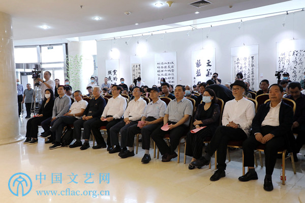 9月23日,“党的光辉照我心——庆祝中国共产党成立100周年百名新文艺群体书画家汇报展暨第三届新文艺群体书画家优秀作品展”在中国文艺家之家展览馆开幕。图为出席领导嘉宾。中国文艺网 高森 摄