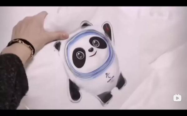 安娜·谢尔巴科娃(千金)在自己拍摄的2022年北京冬奥会Vlog短视频中呈现冰墩墩