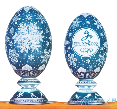 鸸鹋蛋雕作品《冬奥会会标雪花图》 蒲德荣