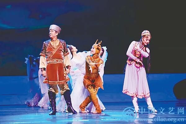 主创团队融合了音、舞、诗、画等艺术形式锻造的美丽场面及戏剧化表演的叙事情景,恰到好处地使用了古代诗歌中常见的“比兴”技巧,润物无声地表现新疆人民对爱情、幸福生活、真善美的追求。“比”指比喻,其使用对人或物有更加形象的比喻,使其含义更加深刻,个性主旨鲜明突出。“兴”指起兴,借助其他事物作为情感发端,引起所要歌咏的内容。该剧中第一篇章《美丽的传说》中传说的小鹿是“比”,象征美好纯真的爱情。第二篇章顺“势”而为,有了“比”基础的铺垫之后,《心灵的呼唤》呼之欲出,呼唤的是忠贞纯洁的爱情。人们对美好爱情的无比向往和追求。