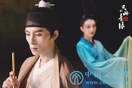 当然,找到了历史上那个最闪亮的历史节点,还需要精心提炼。去年的《唐宫夜宴》中,舞蹈演员们唐三彩般华丽的服饰配色,一边打闹一边准备夜宴的细节,都是在唐代珍宝唐三彩等用色和造型的基础上提炼出来的。这些细节无不在诠释着盛唐一朝的富足、雍容与盛世的无忌与欢心,让国人从物质层面找到了中华民族历史上该有的样子。与《唐宫夜宴》不同,《只此青绿》讲述的是一种从900年前青绿山水画中走出的“美好”。从画轴中走出“美好”,是中国传统叙事中的常见主题。但这次走出的不是美女,而是湛蓝浓绿的青绿山水。其实,在王希孟的《千里江山图》中,除连绵的群山和浩淼的江河外,也点缀有不少亭台楼阁、茅屋村舍,但《只此青绿》的作者舍去所有点缀,而是通过十多位“高冷”的舞蹈演员,让满目的青绿山水走下画卷,并通过舞者在舞台上呈现出来。除了可以在其中找出宋画空寂高冷的唯美外,还能够找出更多值得我们认真玩味的意义。
