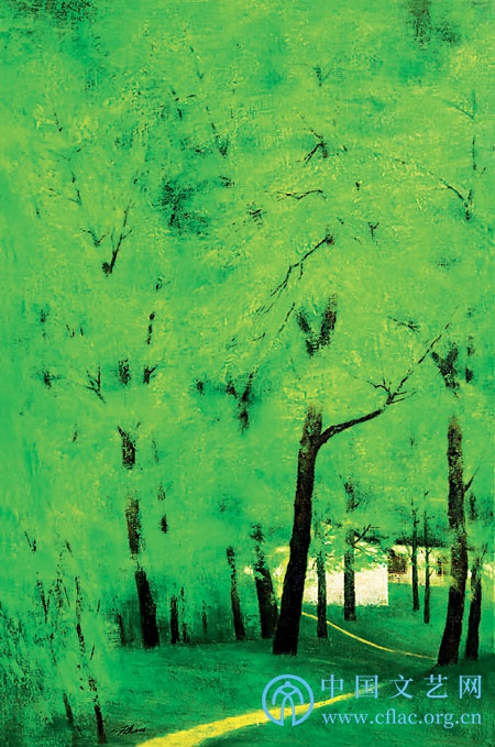 因此,在绚丽的欧洲油画天地中仍留下一片可供中国艺术家展示才能的领域,这就为中国油画家打开了另一扇创造的大门,展现别样的创造空间。向东方艺术吸收营养的探索也是不少西方艺术大师在艺术探索中的着力点,如在欧洲印象派的作品中就出现过不少东方艺术的元素。这是他们发展欧洲艺术的着力点,也从另一个方面显示出中国美学理念的艺术魅力。所以,要把中国人自己的风景画艺术发展到一定高度,既要不同于欧洲的传统艺术,又要兼收并蓄世界艺术的精华,更要创造符合中国人自己审美理念的艺术作品。一代代艺术家与时代同行,逐渐将中国文化精神的特色,注入油画风景的实践之路和时代艺术的探索之路。