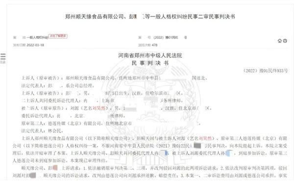 刘昊然起诉食品公司侵权案胜诉,被告方需赔30万元