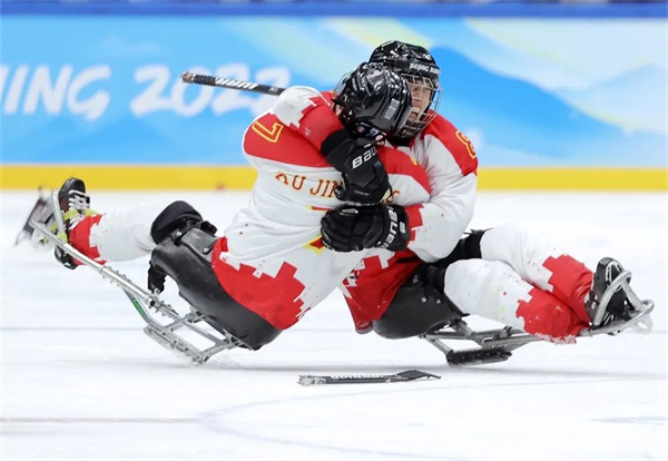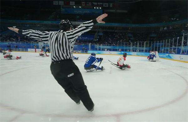 3月5日,北京2022冬残奥会冰球小组赛在国家体育馆举行,中国队以7比0战胜斯洛伐克队。陶冉 摄