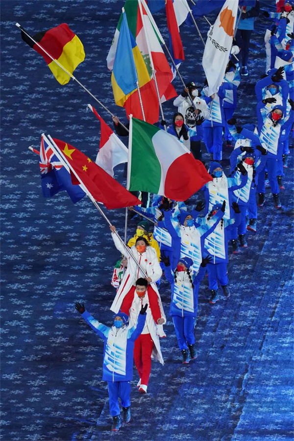2月4日晚,第二十四届冬季奥林匹克运动会开幕式在北京国家体育场举行。中国代表团在开幕式上入场。李舸 摄