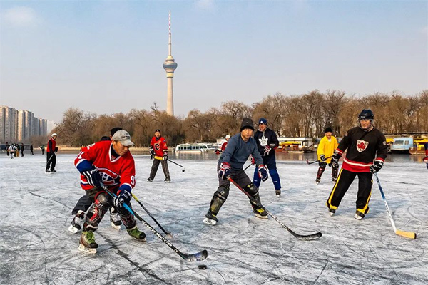 八一湖上的冰球赛 任兴立 摄