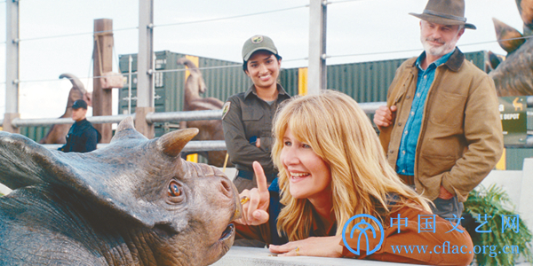 《侏罗纪世界3》运用更多的策略,是情怀。新旧团队全员回归,所有恐龙全员回归,经典场景道具再现,经典动作和台词重现,无一不是在努力地再度燃起观众的热情,充分调用他们对这个系列影片的记忆和情感。但与此同时,这样大面积地调动情怀也制造了巨大的掣肘,影片不得不均匀地分散笔墨给每一个怀旧的细节,虽面面俱到,但手脚难顾。这部影片在片长增加的情况下,连观众最关注的恐龙的出场时间都被大大压缩了。