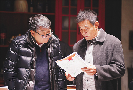 导演郑晓龙(左)与电视剧《幸福到万家》主演刘威在说戏