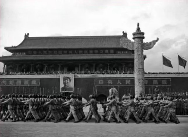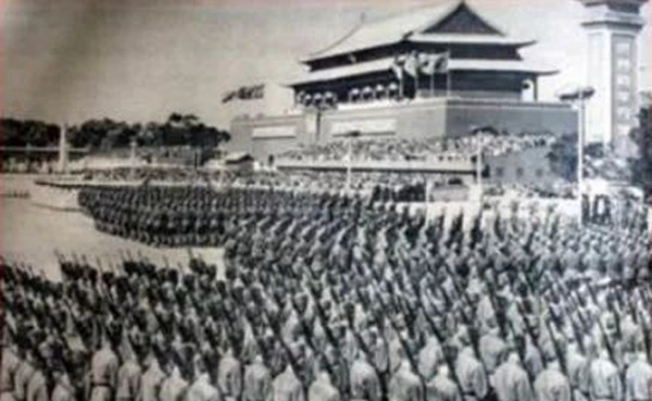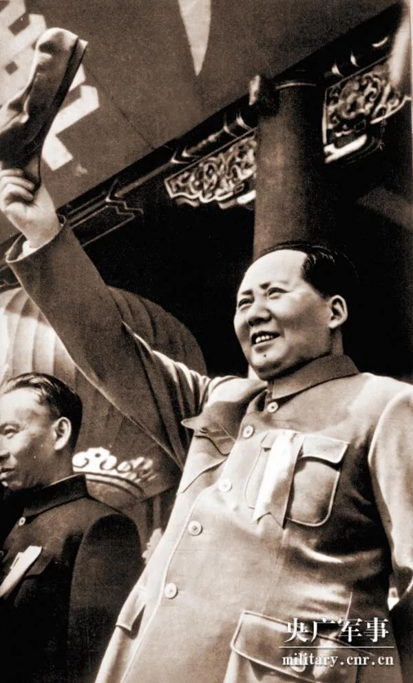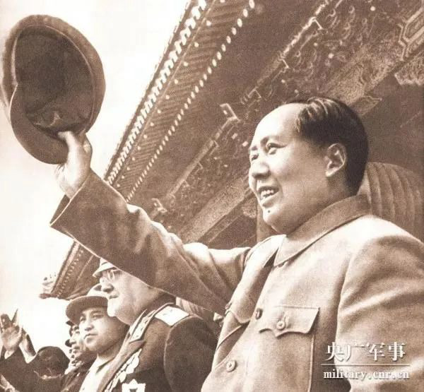 1950年国庆大阅兵,毛主席在天安门检阅台