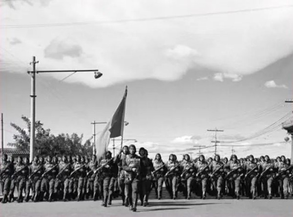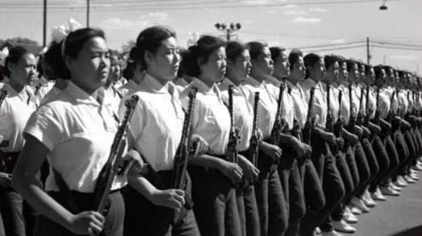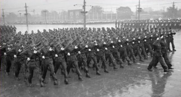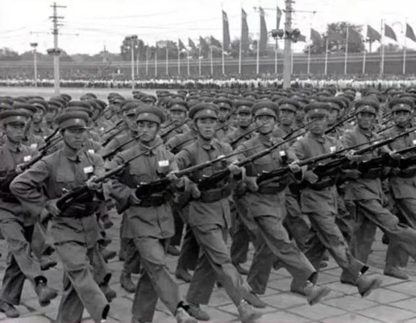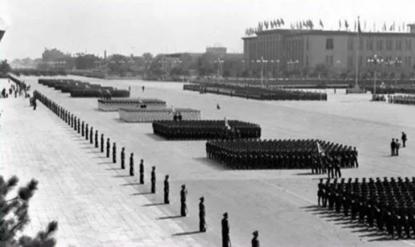 1958年国庆大阅兵,女兵方队首次出现。本次受阅人数为7856人,受阅武器为飞机93架。此次阅兵组成29个地面方队和6个飞行梯队,首次出现了首都民兵师和女民兵队伍。这一年,战争的阴影仍笼罩于中国人民头上,全国都在抓紧军事斗争准备。因此,国庆阅兵“战备气氛”也就显得特别浓。