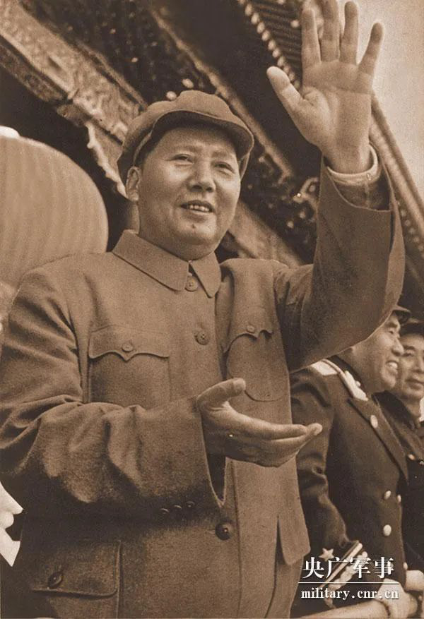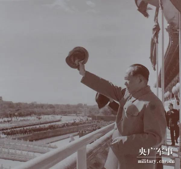 1953年国庆大阅兵,毛主席在天安门检阅台向受阅的人民解放军和各界人民游行队伍挥手致意