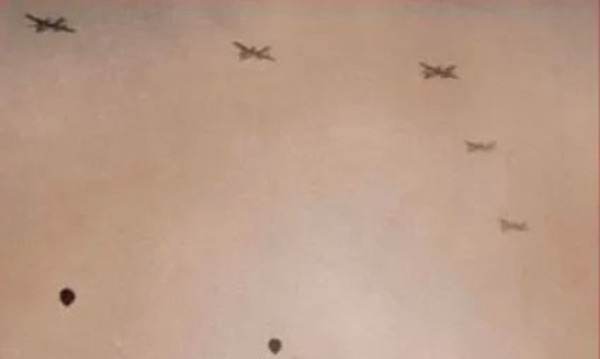 我国自行生产的伊尔-28型喷气式轰炸机飞过天安门上空