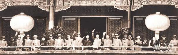 1951年国庆大阅兵,毛主席等党和国家领导人在天安门检阅台观看