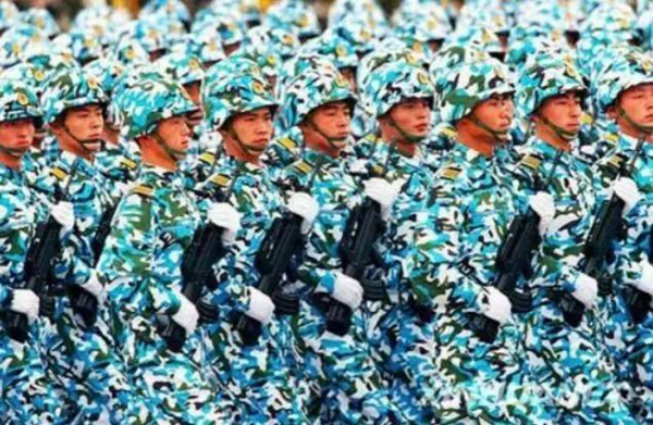 军事学院方队、水兵方队、步兵方队、空降兵方队依次受阅