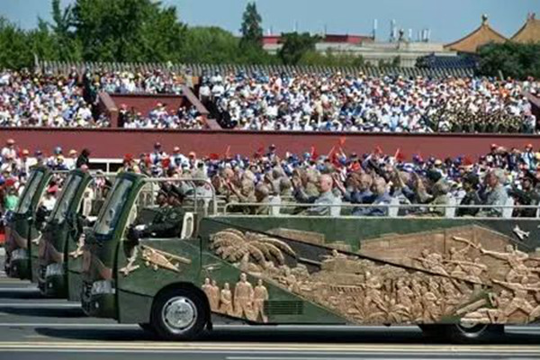 2019年10月1日,庆祝中华人民共和国成立70周年大会在北京天安门广场隆重举行,20余万军民以盛大的阅兵仪式和群众游行欢庆共和国70华诞。中共中央总书记、国家主席、中央军委主席习近平发表重要讲话并检阅受阅部队。这是中国特色社会主义进入新时代的首次国庆阅兵,是共和国武装力量改革重塑后的首次整体亮相。这次国庆阅兵编有59个方(梯)队,受阅官兵近1.5万人,受阅各型飞机160余架、装备580台(套),此次受阅装备全部为中国制造,40%为首次亮相,坦克、战车、火炮、导弹、无人机……这些捍卫国家主权统一、领土完整,捍卫民族尊严和人民安宁的武器装备在天安门城楼前一一通过,表明我国国防尖端技术实现重大突破,人民军队战斗力建设有了更加坚实的支撑。