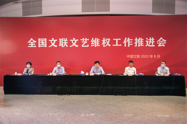 为深入学习贯彻习近平法治思想,维护广大文艺工作者权益,切实履行新时代文联组织自律维权新职能,8月31日,全国文联文艺维权工作推进会以线上线下相结合的方式召开。会议旨在以习近平法治思想为引领,学习贯彻习近平总书记在中国文联十一大、中国作协十大开幕式上的重要讲话精神,提高认识,明确思路,交流经验,部署工作,进一步推进2021年10月新修订印发《中国文联关于进一步加强文艺维权工作的指导意见》的贯彻落实,推动全国文联系统文艺维权工作全面发展。中国文联党组书记、副主席李屹出席会议并讲话。中国文联党组成员、书记处书记张雁彬、张宏,中宣部版权管理局局长王志成、中国文联权益保护部主任暴淑艳出席会议。会议由张雁彬主持。