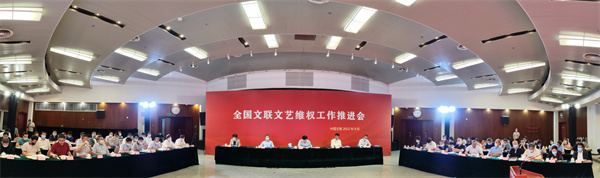 8月31日,全国文联文艺维权工作推进会以线上线下相结合的方式召开。图为会议现场。