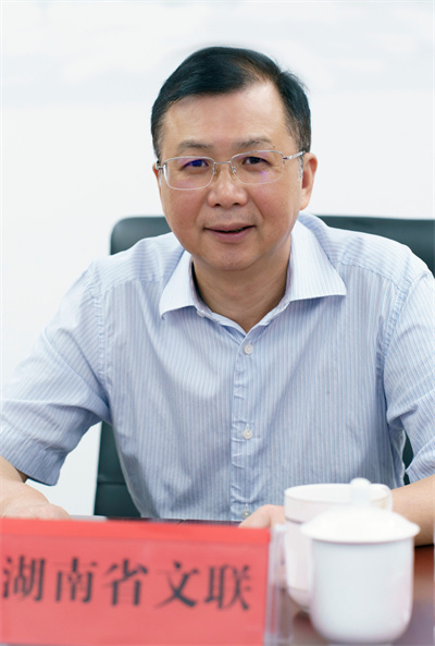 8月31日,全国文联文艺维权工作推进会以线上线下相结合的方式召开。图为湖南省文联党组书记、副主席夏义生进行线上会议发言。