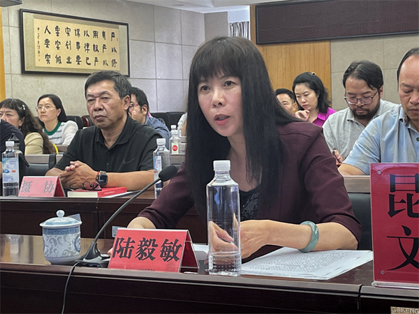 8月31日,全国文联文艺维权工作推进会以线上线下相结合的方式召开。图为昆明市文联党组书记、主席陆毅敏进行线上会议发言。