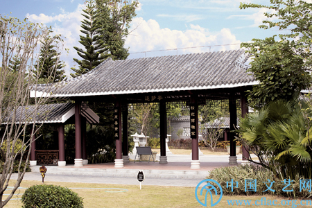 当一座古风醇厚、韵味十足的院落——乡情园进入眼帘,眼中自是多了一份清丽。好一处安静的院落。青砖黑瓦,这是一座典型的岭南庭院,像一处富贵人家的府邸。有一院门向外突出,大理石门框上方挂着一块长方形牌匾,用隶书写着“深圳乡情文化基地”。牌匾极为简洁,紫红色底,金黄色字,镶以金黄色边框,简单低调,浅白厚重。
