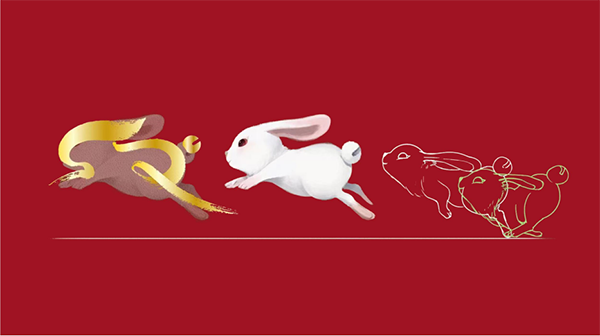 一片吉祥红,瑞兔化草书。作为中国探月工程、中国行星探测工程的标志设计者,2023春晚标识的主设计师顾永江结合吉祥物“兔圆圆”的姿态,定格奔跃向上的瞬间,从中国书法艺术的草书意象,幻化出一个全新“卯”字,于静中生出动姿——卯字如开门之形,兔形跃动向上,卯兔跃开春门,新一年里踔厉奋发的新气象跃然纸上。