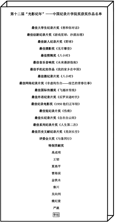第十二届“光影纪年”——中国纪录片学院奖颁奖典礼在京举办