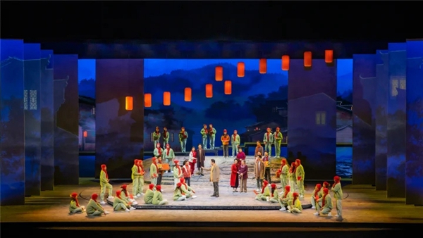 《绿水青山》全剧共六幕,时长140分钟,巧妙运用与情境相结合的舞台时空,将音乐、美术、灯光等艺术样式融为一体,配合多媒体设计等多种表现手段,强调诗化越剧和时代化表达。越剧唱腔清幽婉丽、表演真切动人,极具江南灵秀之气,和《绿水青山》娓娓道出的画面语言、深刻主题不谋而合,以润物细无声的方式,让生态文明理念深入人心。这也是浙江丽水与浙江小百花越剧院的一次“双向奔赴”,通过创新“省地合作”模式,在大主题和艺术的交融碰撞中打造一场越剧文化盛宴。