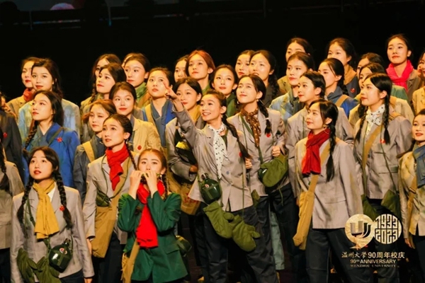 就在《温大记忆》上演的同时,正值中国文联推进文艺创作工作会的召开。这次会议以“对文艺创作时代命题的共同回答”为议题,提出了新时代文艺创作的五条规律性认识:“在思想开掘上,勇立时代潮头;在题材选择上,回应人民所需;在表达形式上,大胆创新创造;在审美追求上,弘扬中华美学精神;在艺术评价上,坚持社会效益至上。”而这场同期举办的校庆演出,恰似对会议精神的遥相呼应,更提示着高校也是文艺创新中一支不可忽视的力量。从艺术思政到美育课堂,高校文艺以育人为内涵回应着时代命题,也激扬着青春的活力。