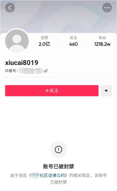 据报道:抖音相关负责人表示,该账号违反平台相关规定,已封禁。