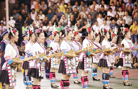 侗族有“月也”走寨互访的传统,这种传统时至当下仍在流传,只不过在外围的形式上有了一些时代性的调整。如9月底在八江镇举办的首届侗琵琶文化艺术节,吸引了来自湘、黔、桂三省少数民族地区的30余支侗族琵琶歌队近800多名侗族琵琶歌手,身着民族盛装欢聚一堂,弹奏弦乐、纵情欢歌,吃百家宴、喝侗家酒、品侗家美味、观侗家特色农产品——这实际上就是一种基于共同爱好的“月也”。