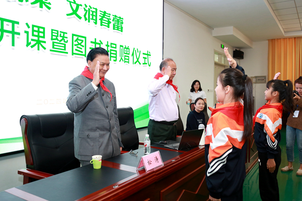 同时,活动在第一中心学校举办了公益课堂开课暨图书捐赠仪式。活动组委会向学校捐赠《新时代我们一起学雷锋》《青少年文学》杂志,学生代表为嘉宾佩戴红领巾,表达由衷的谢意。之后,老将军陶克和书法家松涛分别为师生讲授了“学习雷锋精神”和“书法艺术与传统文化”特色课程,促进师生深刻理解和践行雷锋精神,学习中华优秀传统文化。