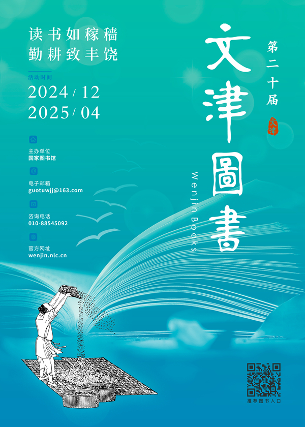 第二十届文津图书的推荐及报送工作从即日起至2024年12月31日截止。联合评审单位、出版社、读者均可登录文津图书官方网站http://wenjin.nlc.cn/进行好书推荐。(咨询邮箱guotuwjj@163.com)