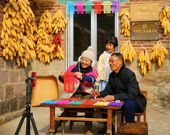 1月5日,非遗传承人来逢强通过网络展示新设计的一套中国年“过门笺”。
