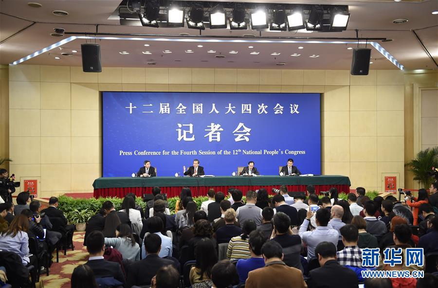3月8日,十二届全国人大四次会议新闻中心举行记者会,邀请外交部部长王毅就“中国的外交政策和对外关系”的相关问题回答中外记者的提问。新华社记者 赵颖全 摄