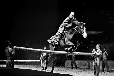 体形健硕的马儿在圆形舞台内奔跑,演员赤脚踩在马背上,徒手保持平衡,在马儿快速奔跑的瞬间高高跳起又稳稳落下;马儿如利剑一般冲出舞台,演员们在60公里时速的马背上翻腾、转体、倒立……眼前惊险的表演,令观众热血沸腾,拍手叫好。