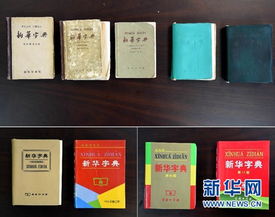 这是不同年代出版的《新华字典》(拼版照片,5月13日摄)。新华社记者 罗晓光摄