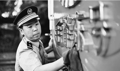白手套、大檐帽,被同行誉为“问不倒的火车头”,是领导眼中的“领头雁”,被班组年轻人敬为“神一样的司机长”……这就是“80后”共产党员、北京铁路局丰台机务段“毛泽东号”第十二任司机长刘钰峰(见上图,资料照片)。